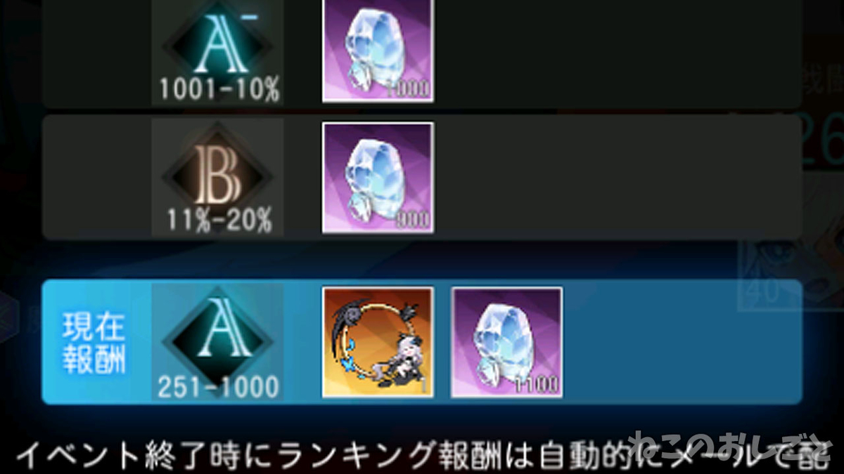 ランキング報酬として上位500名には